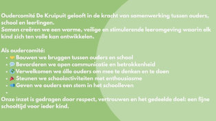 Onze school beschikt over een oudercomité met enthousiaste ouders. Maandelijks steken zij de koppen bijeen om schoolactiviteiten te ondersteunen of initiatieven te nemen. Alle ouders zijn welkom hierbij ideeën aan te reiken of een handje toe te steken.